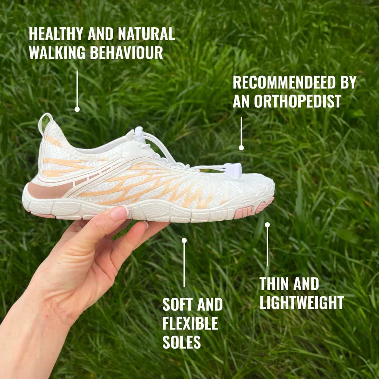Experience a genuine barefoot feel with our ultra-thin soles, designed for a true connection to the ground.