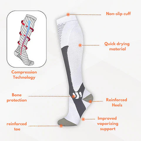 Thanks to their superior elasticity, our compression socks mold seamlessly to your feet's shape, providing unparalleled comfort whether you're in shoes or barefoot. Enjoy unrestricted ease whether at home, work, or during physical activities. Invest in your health and savor the comfort and relief our socks bring.