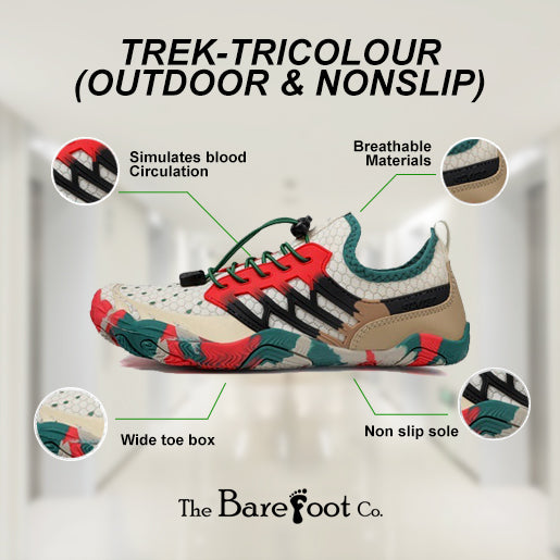 Choosing Trek-Tricolour™ barefoot shoes means opting for unparalleled comfort, enhanced foot health, and a genuine walking experience. Enjoy the sensation of barefoot walking with added support and protection.